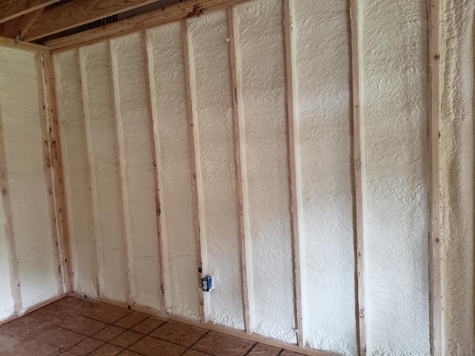 Traditional insulation materials like fiberglass batts or loose-fill simply don’t perform well in small, utility-style buildings. Spray foam, on the other hand: